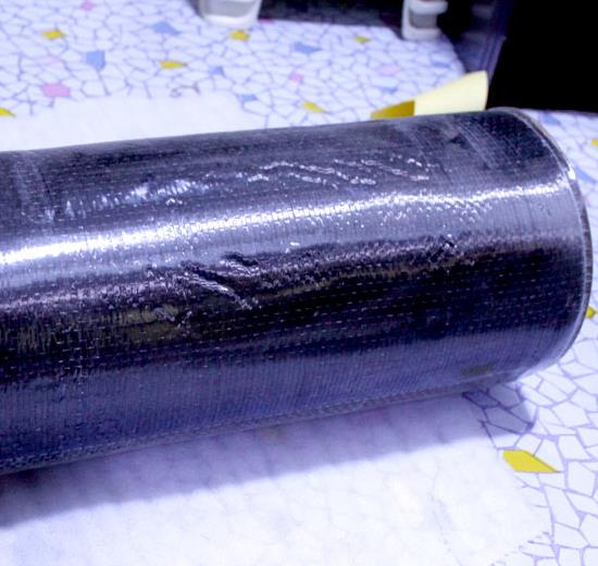4、碳纖維布貼片施工。修復(fù)時,樹脂主劑和固化劑應(yīng)按一定比例混合,用滾刷均勻涂抹粘接樹脂。修復(fù)時要注意碳纖維布和樹脂之間沒有空氣,所以要均勻涂抹,擠出氣泡。